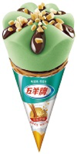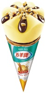 Five Ram ice-cream cone with classical flavors (pictures of products): The crisp cone shell wraps the delicate and refreshing taro flavor, cantaloupe flavor, chocolate flavor, pineapple flavor, milk custard flavor and durian flavor ice cream. Coming with crisp peanuts, the ice-cream cones taste smooth and refreshing, a good match with the chocolate coating at the surface. Six temptations, six choices, will become classical flavors to accompany you for ever.