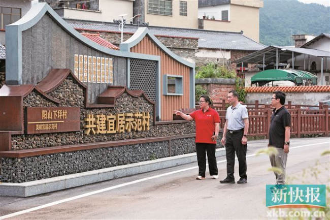 聂扬信(右一)结合下坪村美丽风貌和红色资源,大力发展教育培训,带动农产品销售。新快报记者邓迪/摄