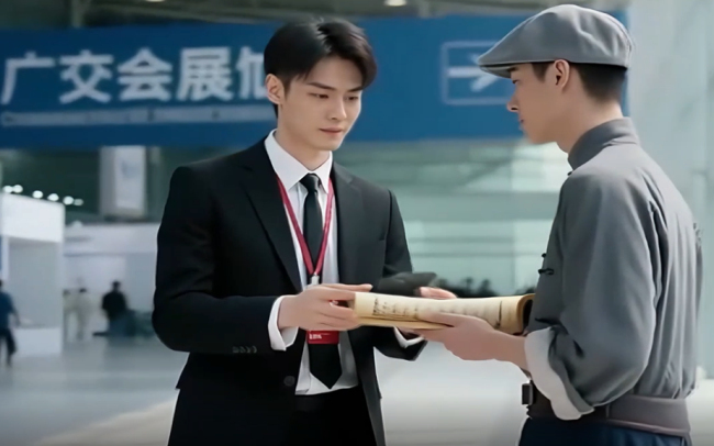 作品《从十三行到轻出》以18世纪末“事仔”的视觉穿越到现代,感受古今的商道传承