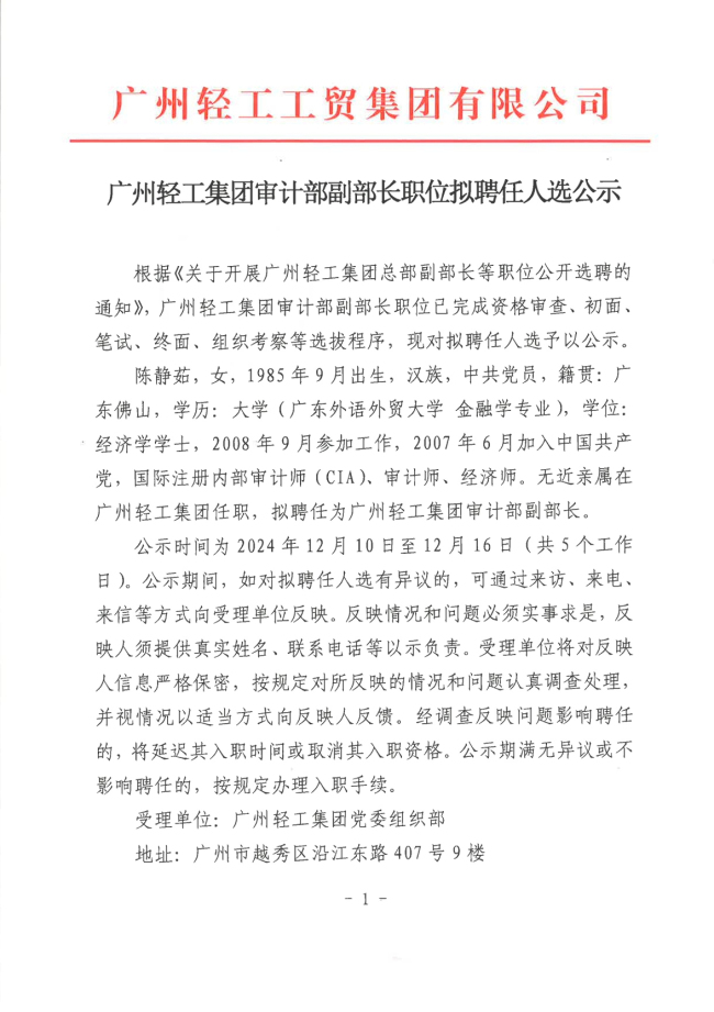 大江在线审计部副部长拟聘任人选公示